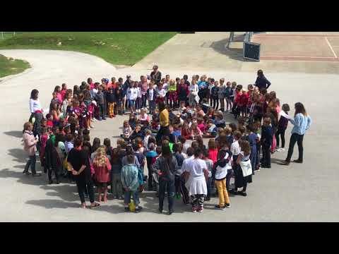 Tous les élèves de l'école se sont réunis pour accueillir les nouveaux élèves en chanson. Au programme: Le polyglotte de Henri Dès.